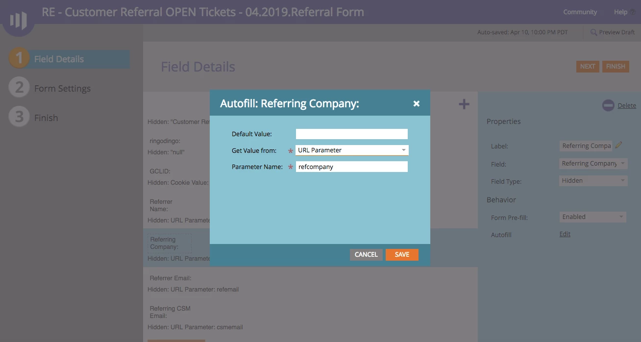 In order to do so, I have set set up the form to populate the hidden fields via URL parameter below: