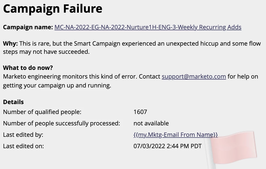 We've noticed a bunch of error messages regarding a campaign and I am seeing this message: