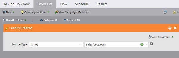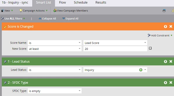 I tested adding a new choice into the Flow of the second campaign above using the choice "If Person Notes contains ht=/xctu". (I realize this would not have addressed the change in Status - I was just trying to see if the Queue assignment would work.) When I tested in the sandbox, the lead did not get passed to the SFDC sandbox.