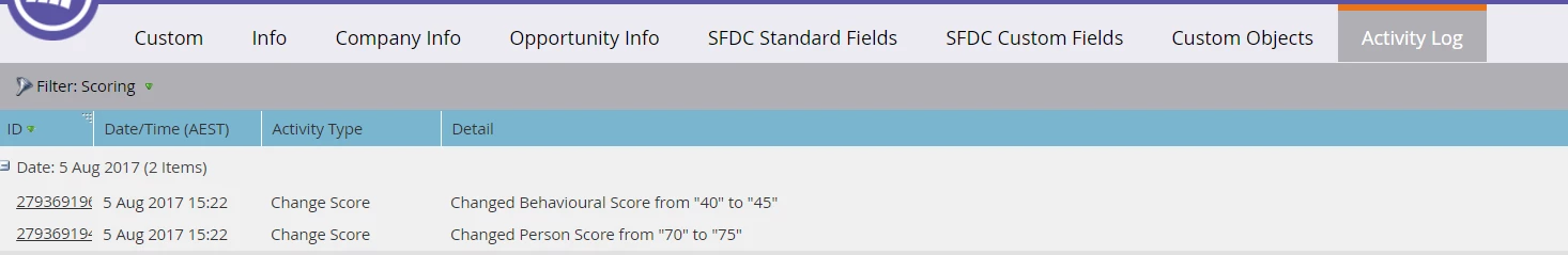 Is there a way of finding out the changes in lead scores in a certain time frame? For example, I would like to know how the scores have changed in the last 4 months. What would be the easiest way to do this?
