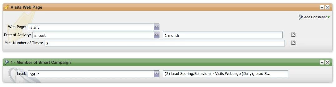 We recently set up three lead-scoring campaigns to score leads on daily, weekly, or monthly visits to our site. A different number of points were set up for each campaign. We wanted them mutually exclusive, so if leads got points for a number of daily visits they wouldnt qualify to get points for weekly or monthly visits and so we added a "not member of ___ smart list" filter. For some reason this filter isn't working and leads are getting scored by all three campains if they qualify for the daily campaign. How do I prevent this from happening?