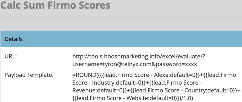 Each of the webhooks uses the free Hoosh Marketing excel calculator to compute an excel formula containing the demographic and firmographic fields. You can also send webhooks to Flowboost to do calculations with field values.