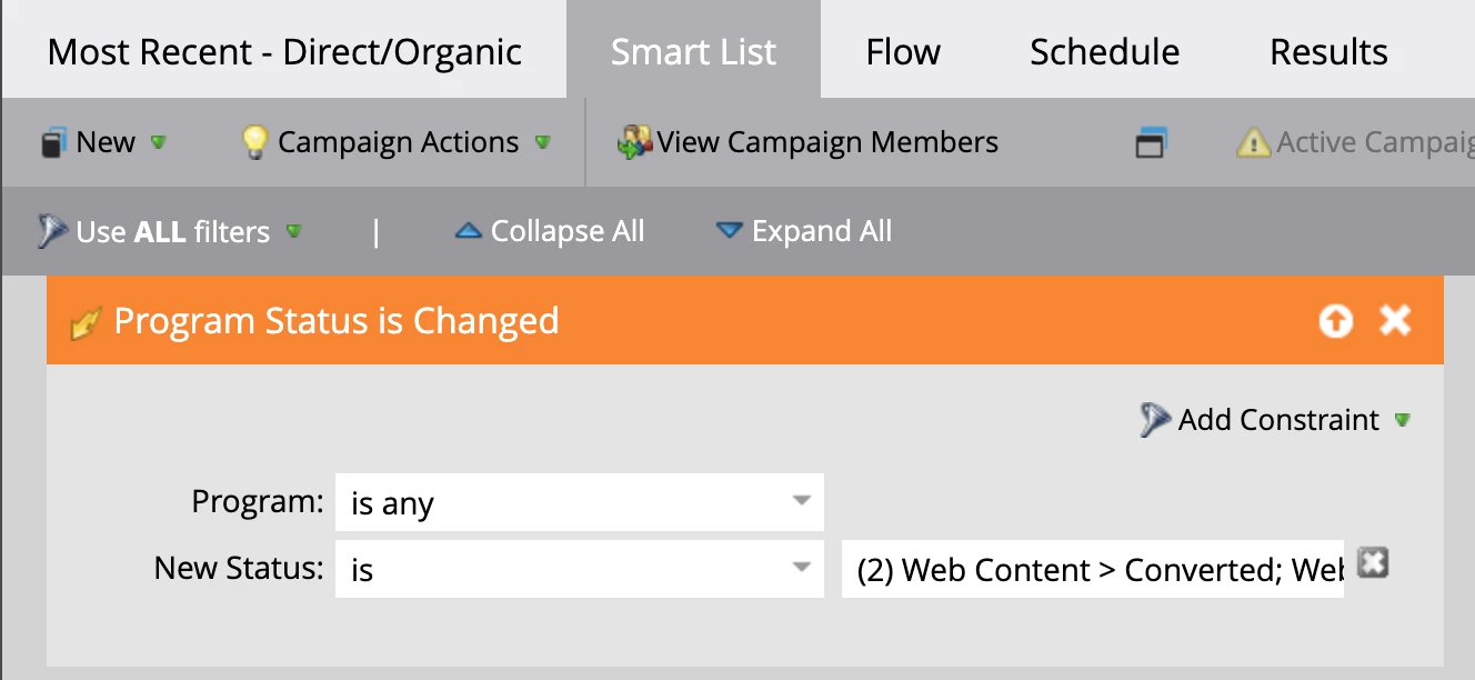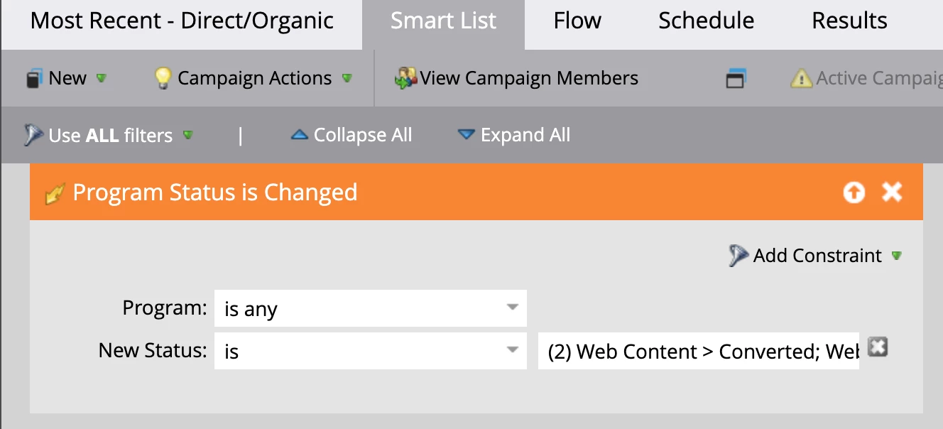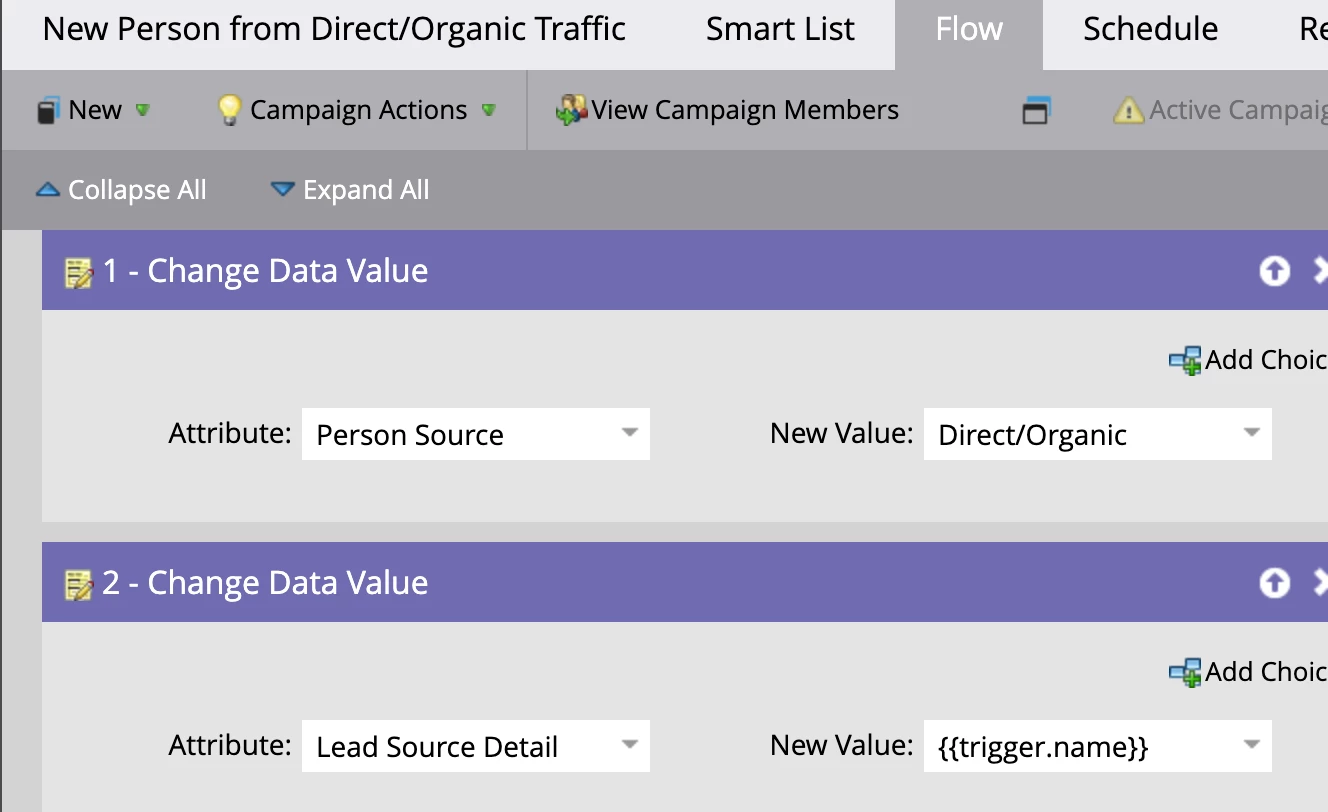 They have it set up that if the program status is changed, then the lead source recent will be Direct/Organic. This would mean even if they came in through something like paid search, Marketo would stamp the lead source recent as "Direct/Organic" overwriting the just stamped "Paid Search".