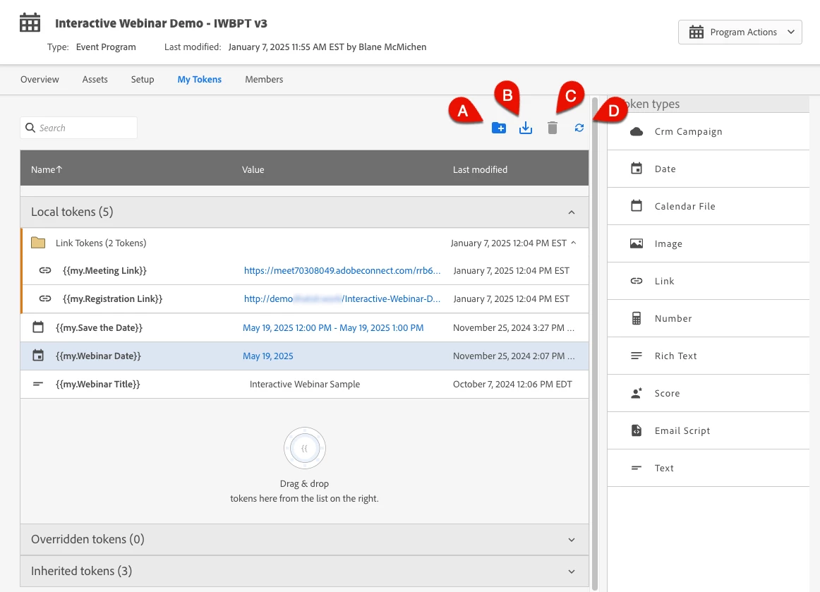 The new My Tokens dashboard puts several nice features right at your fingertips. (Follow along in the image below.) In addition to the new clean design, there are some nice features to improve token setup. [A] Folders can now be created to help organize tokens, which is very helpful for event programs that require many tokens. [B] Import Tokens, yes, you can import tokens from another program or marketing activities folder. [C] Delete the selected token … but wait, I usually can’t because it is used somewhere, and I can’t find it! [D] Boom! Find Usage is now available for your tokens, so you can see, fix or change where and how they are used.