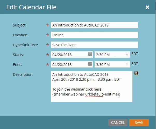 Link to WebEx Webinar not showing up in Save the Date Token