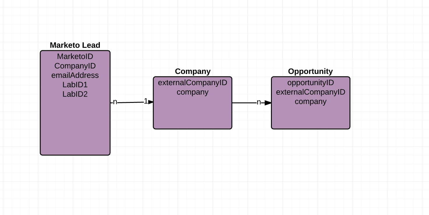 - There is currently no concept of a many to one relationship for companies to leads in Marketo