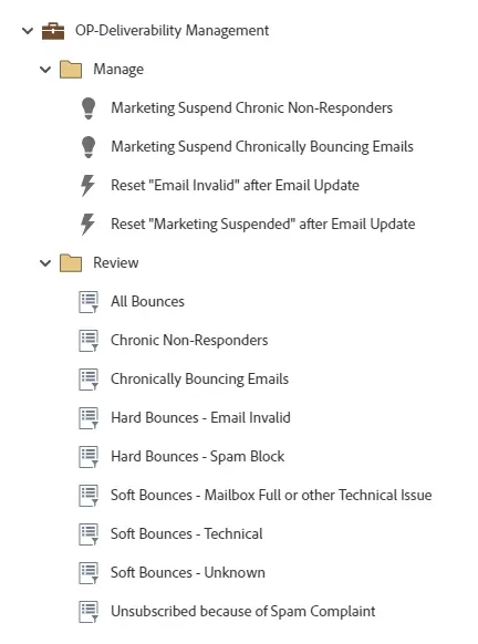 - Download the OP-Deliverability Management Program from the Marketo Program Template Library to manage your current state of email deliverability and manage chronic bounces and non-responders.
