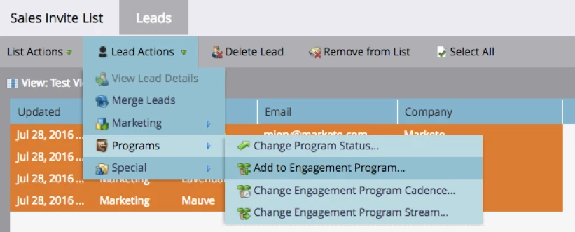 In this case, the easiest way to tell your engagement program that yes, these leads belong to this program as members, is to use a Lead Action to add the members to one of your program's engagement streams. Now Marketo understands that these leads in your list are members of your program – they are in one of its streams.