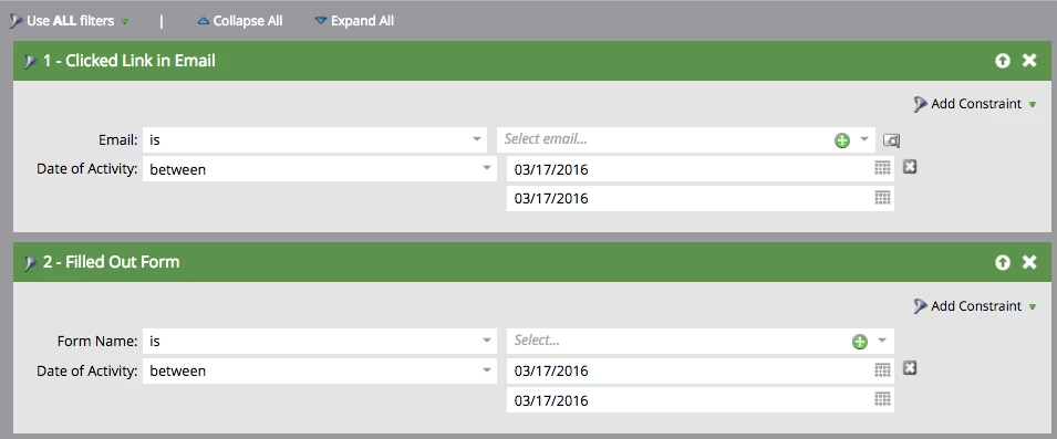 I'm trying to get a List of Leads who Clicked Link in Email AND Filled Out Form on Same Day (or within a certain time frame).