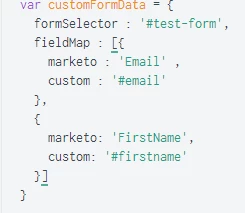 Awesome work as always @Sanford Whiteman​ ! Lets say I wanted to map multiple input fields, would I be able to turn the fieldMap into an array that contains them? If more input fields needed to be added, I could just add them to the array. Might be syntax error, but the Marketo lead DB is only recording the FirstName in the below example.