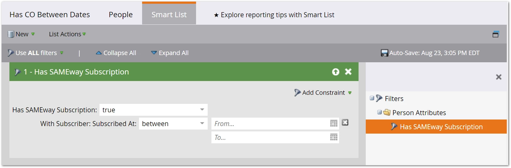 The boss goes, “Can we get a scheduled report of people who subscribed to any newsletter in the past month?” You know just what to do: