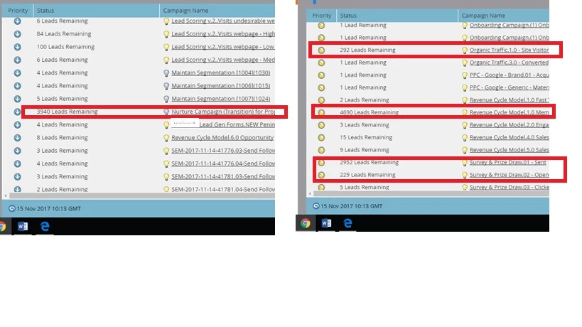 The most common flow steps for them are: Change data value, Send email, Sync to SFDC, Change Program Status, Send Alert, Add to / Remove from List which have the priority 50 and 75 respectively. They are all priorities executed at a same time and Marketo told us that this is the main reason of the campaign backlog.