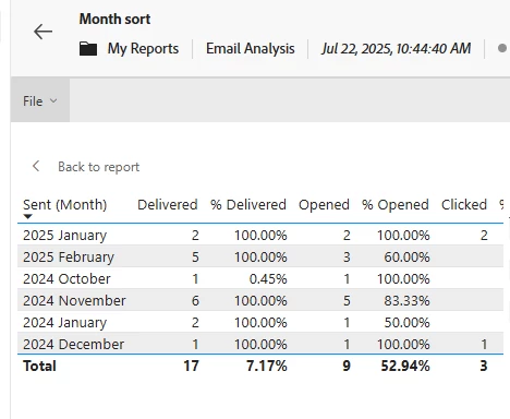 For example in the email analysis, when you create a report with a Sent Date - See screenshot