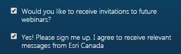 Hi everyone, I have a question that I thought would be a simple at first. We wanted to capture email preferences on a webinar registration form we have. Form in question: https://pages.esri.ca/English-Webinar-Template_Form-Test-2.html