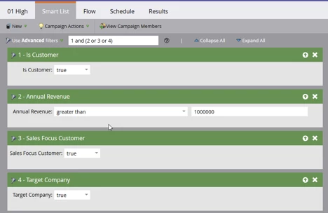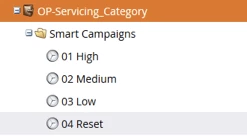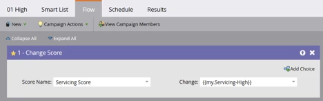 In this example, I have a new score field of “Servicing Score” that will change based on the customer’s attributes. These smart campaigns would run periodically (weekly/monthly) to keep the score current.