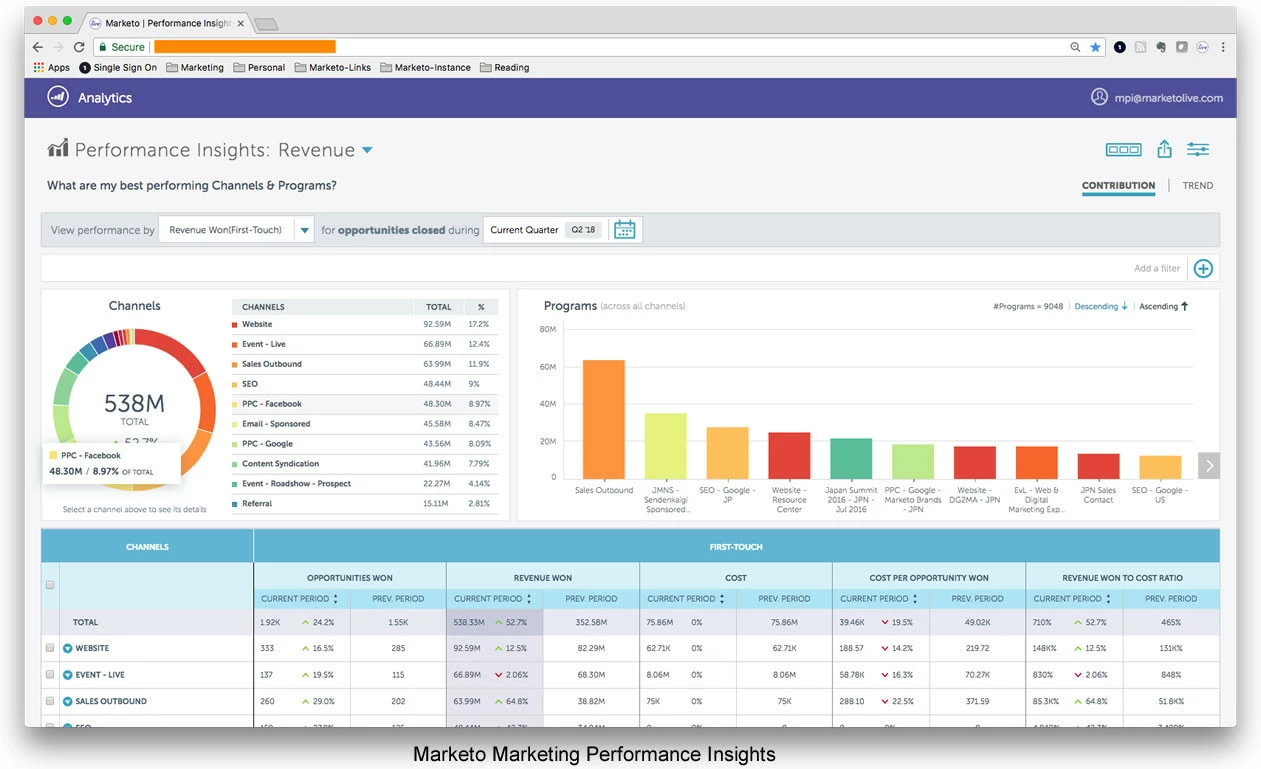 Marketo Performance Insights (MPI): this is a new tool offered by Marketo that is purpose-built to make it easy to see program success and revenue attribution packaged in the Marketo Insights UI.