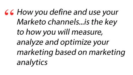 How you define and use your Marketo channels, member statuses, and which member statuses are successes is the key to defining how you will measure, analyze and optimize your marketing based on marketing analytics. Salesforce has similar architecture design concepts that map to Marketo: Marketo Channels = SFDC Campaign Type, Marketo Channel Member Statuses = SFDC Campaign Member Statuses, and Marketo Success = SFDC Responded. The big differences are, SFDC campaign types are not templatized for re-use, and SFDC does not support the idea of success defined according to each unique channel member status. These seemingly small differences are what give Marketo a big edge in collecting and storing data for reporting. Now you have the essential building blocks to get your Marketo analytics right. I cannot overstate how important it is to get these right, nor how often we see Marketo customers miss on these important elements.