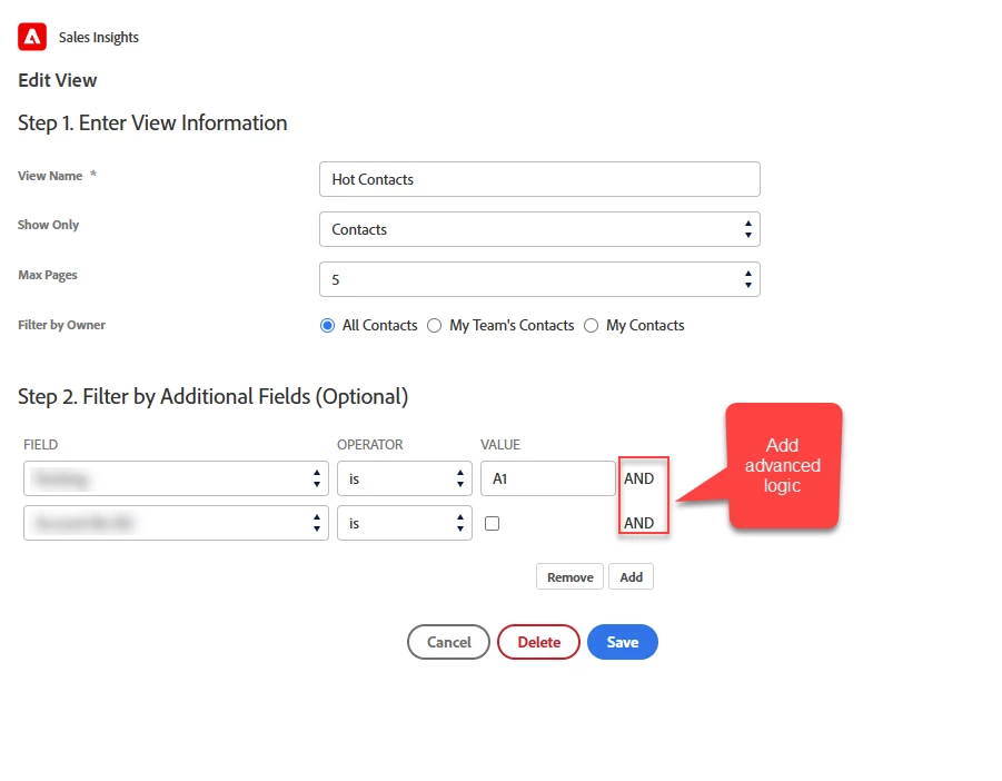 Marketo Sales Insights Best Bets View - Add advanced Logic