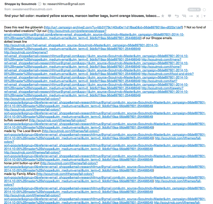 Above: What was very likely a visually appealing image-heavy HTML version, that provides little to no context for users with HTML disabled.