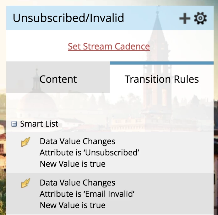 - Streams are subsets of content within an Engagement Program. Users can define rules to put leads into different streams.