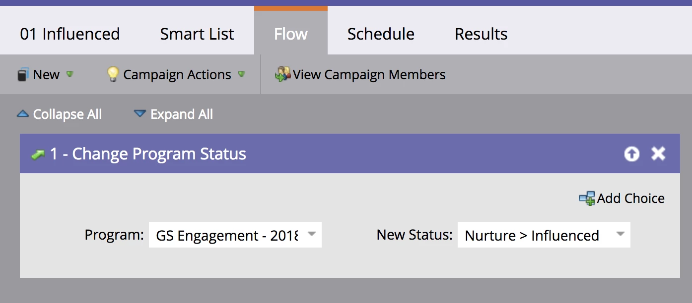 - If you have a generic nurture program, your only Flow step should be: Add to Engagement Program-->Generic Engagement Program, Stream=Stream 1. Add choices to determine which stream if you have multiple streams.