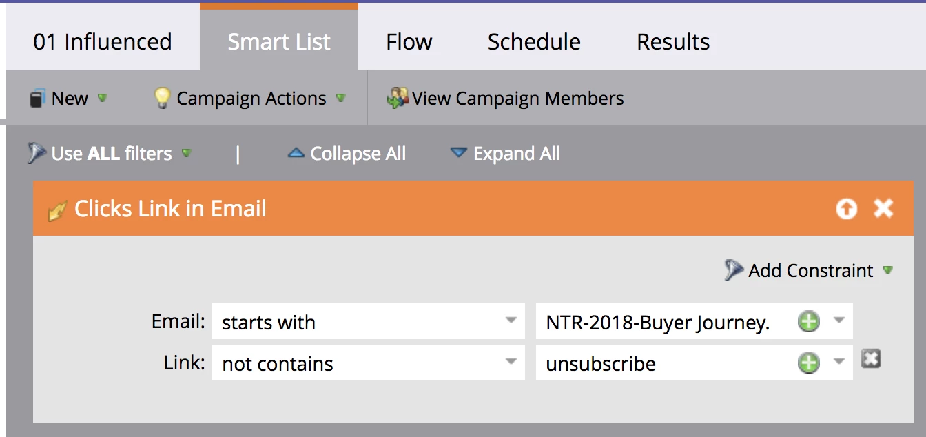 Even though we have nested programs, the overall Engagement Program needs to capture success. Create a Smart Campaign at the Engagement Program level to track the success of the program: