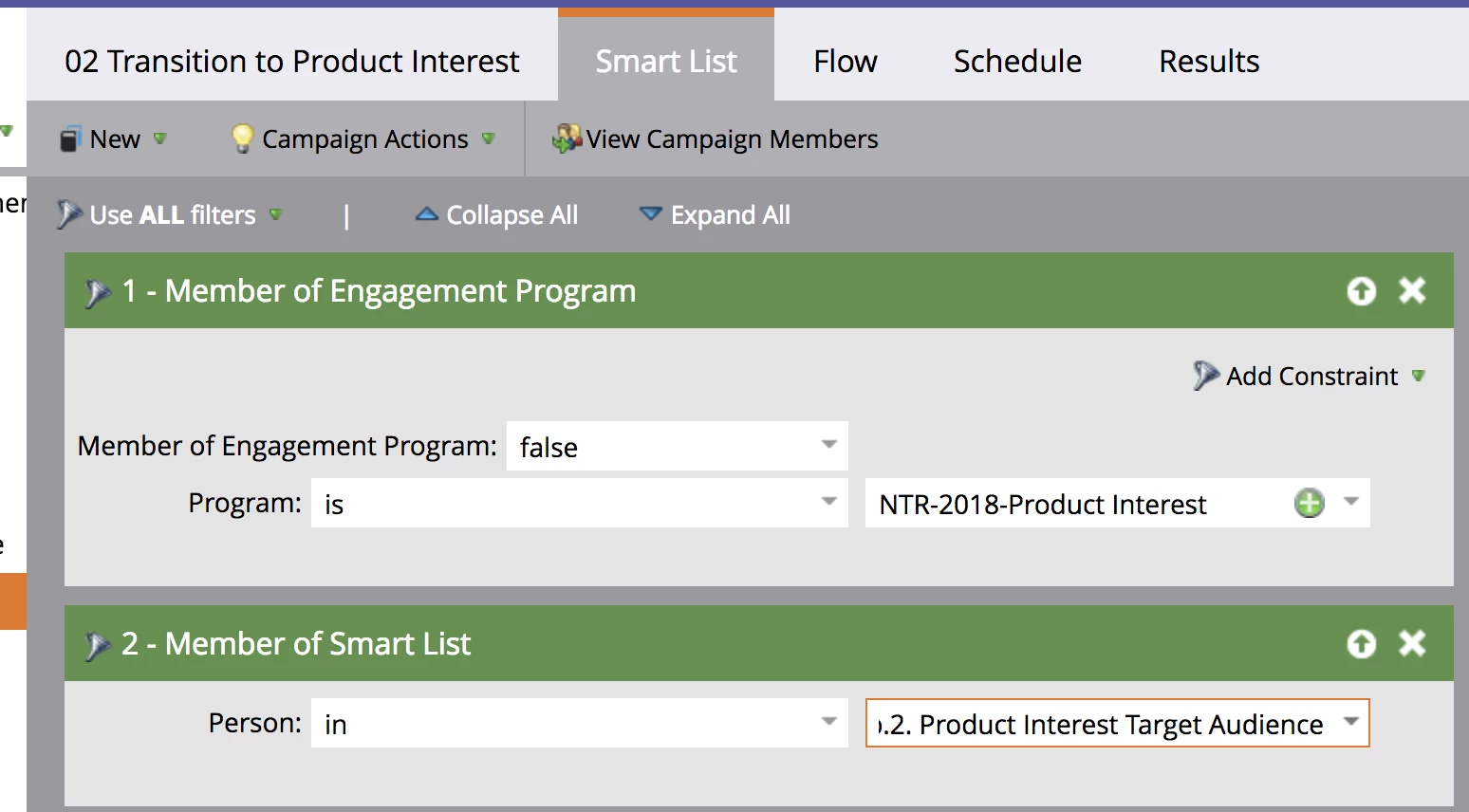 - If you don’t have any other nurture programs, you’re done! Otherwise, we need to set up transition rules to get people into the correct nurture program. For each additional nurture program, we need to create a new Smart Campaign to transition leads who qualify: