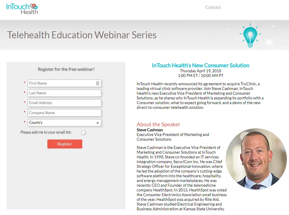 Your landing page should be located within your webinar program so that it’s local. This allows you to customize each landing page for your webinar. Insert your form into your landing page, include relevant information like the day, time, speaker info, and a summary of your webinar.