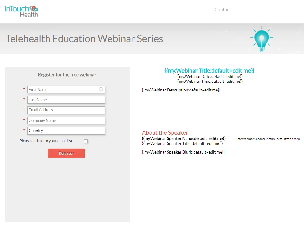 Helpful trick: make as many sections of your landing page as possible out of tokens. When you or your users clone a webinar from a template, they can add all of the information in the token tab (even the speaker picture!) without disrupting any formatting within the landing page.