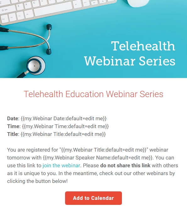 It’s like magic! Using tokens, including these two special events and webinar-specific tokens, helps you create a beautiful and scalable confirmation email!