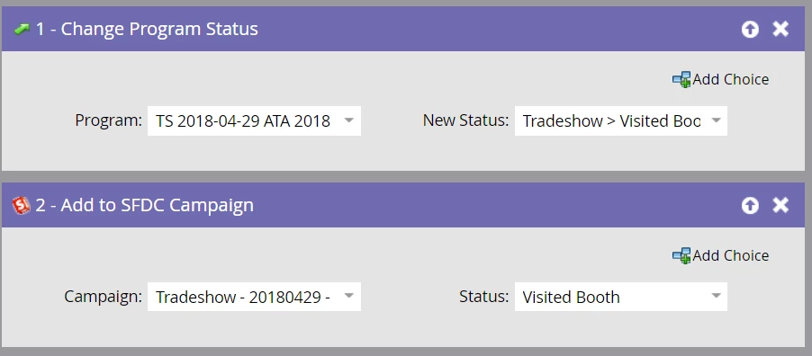 Then update the program status in the Flow step. I also add prospects to a Salesforce campaign so that other teams can easily see through Salesforce reports which of their leads were at an event!
