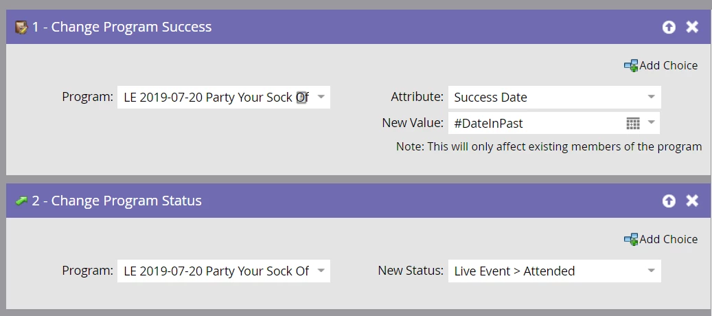 If you tell Marketo that this group of people reached success by changing the program status first, it will automatically mark the success date as today. This order of steps helps ensure that the data will be correct. Then you set the correct program status. At that point, success date will already be set and won’t update to today, so your reporting will be more accurate.