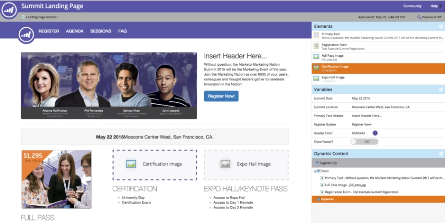 Using Marketo landing pages puts the power of page creation in marketers’ hands. With pre-built templates, it’s super-easy to edit text, pop in an image, and add a form without code. While landing pages often serve as a lead gen page, they can also be built into microsites or campaign hubs. This is helpful if you are running campaigns, but your web team doesn’t want to update the website for each circumstance.
