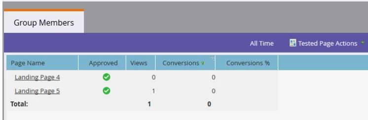 Add the landing pages that you would like to test and approve your test group. Once your landing pages are approved and live, you’ll be able to compare the stats of the landing pages in your test group.