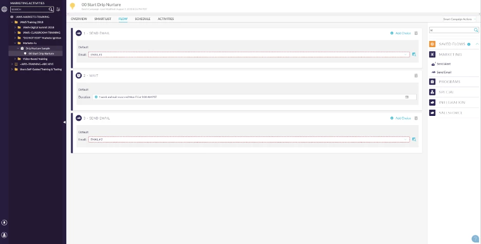 Send Email 1 > Wait > Send Email 2 > Wait > Send Email 3...