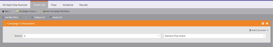 The smart list of the requested campaign simply contains a trigger for campaign is requested.