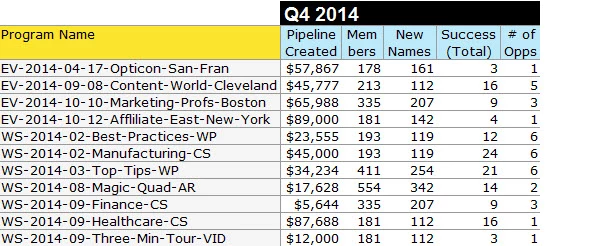 Going back to our Webinar Channel example, you may decide that a Webinar is successful when X number of people have a status of either Attended or Attended On-Demand. When you run your reports, you’ll then be able to quickly answer the question: “Was this Program worth my time and money?”