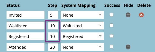 Note that people can’t move backwards through Program statuses. When you’re setting up your Channels and their statuses, you’ll notice that Marketo requires you to order them (this is called “Steps”):