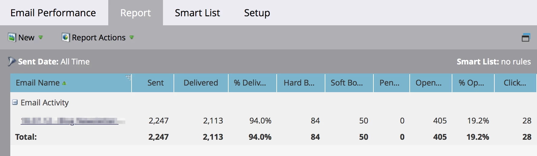 If you want to know how an email performed for a subset of the people that you sent it to, the smart list tab comes in handy.