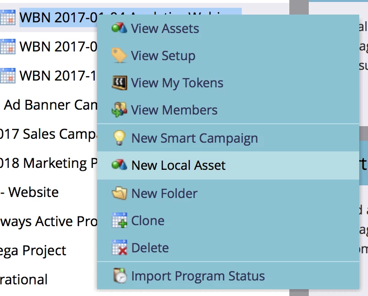 If I’m interested in emails pertaining to a specific program such as all the invite and post-event emails pertaining to a specific webinar, I ran last month, I will create the email performance report locally within the program in marketing activities.
