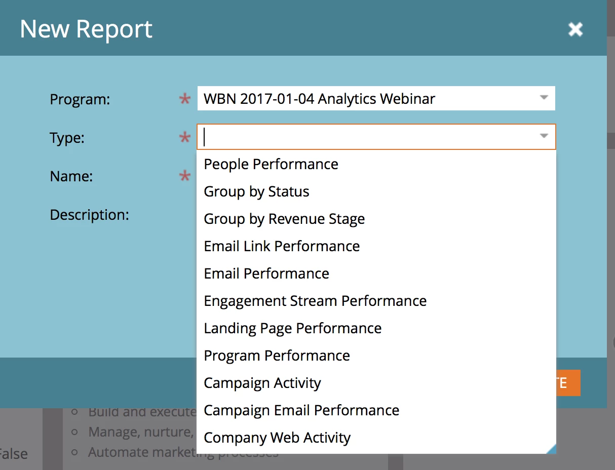 This report type ties channels and programs to dollars, pipeline, and revenue. Anytime you want to ask how a specific program or overall channel performed as measured monetarily, this is your go-to report type. As a marketer, I spend the majority of my time specifically using this report type and rely on this heavily to produce the reports that the CMO wants to know. Where did all the money go? What did I get for it?