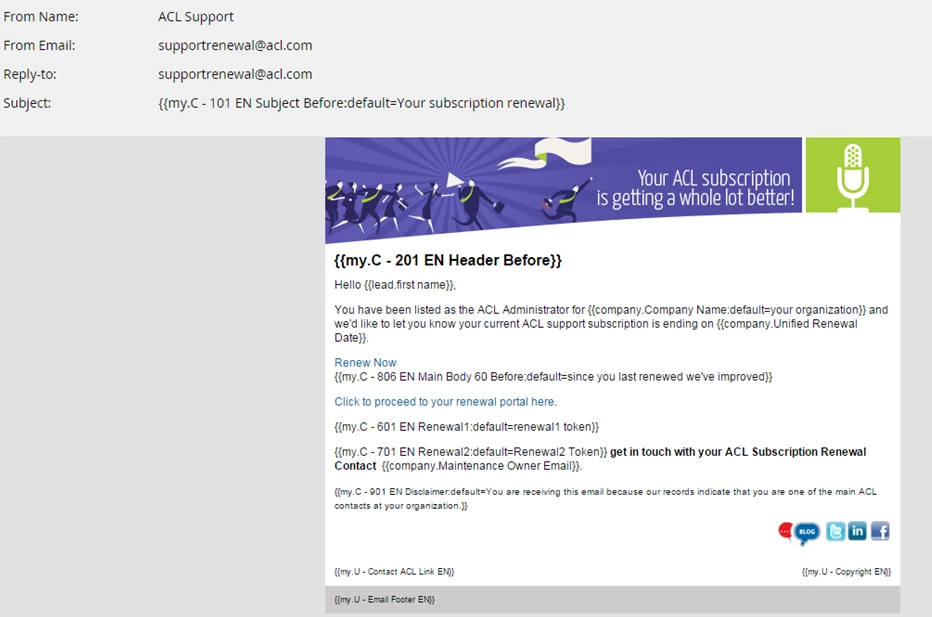 And program tokens! Here's a screenshot of an email campaign template, one that fits in with our engagement programs: