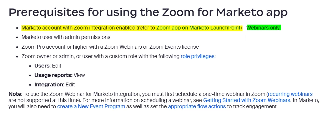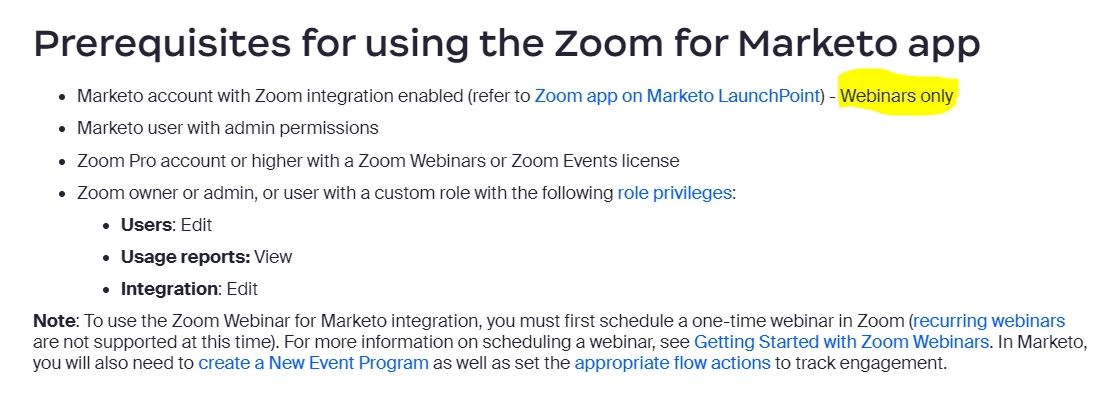 We are trying to integrate Marketo with Zoom to run Zoom Events (Not Zoom Webinars).