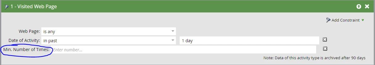 I have an Anonymous Web Activity report where bots from legitimate companies I want to track are hitting my webpage hundreds of times a day. According to support there's no way to prevent this without changing my smart list in a way that may exclude legitimate companies accidentally. Maximum Number of Times as a constraint would fix my problem!