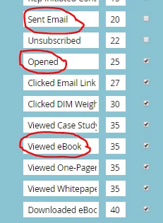 Opened email and Viewed eBook are success with respective tag values: 20 and 30 and send is not a success