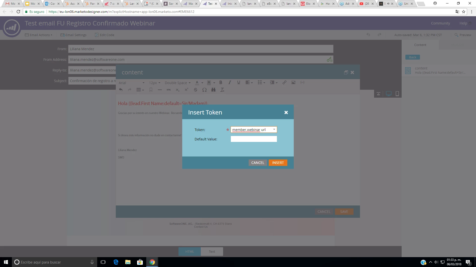 I have a doubt about creating webinar with Marketo. I red and saw in several tutorials that is possible to use this token: {{member.Webinar – url}} in the confirmation email to redirect to the webinar and not to use the GoToWebinar link. But this token is not appearing to me: