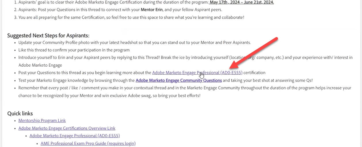- Post your Questions to this thread as you begin learning more about the Adobe Marketo Engage Professional (AD0-E555) certification