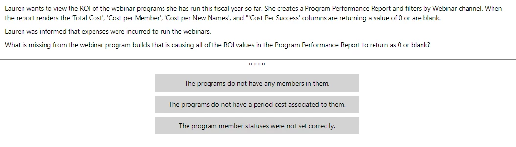 Q: Which column is NOT part of a Program Performance Report?