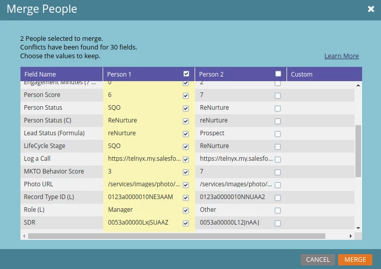 When manually merging in Marketo with discrepancies between the person field values, the interface allows you to choose which values you want to win and therefore keep on the resultant merged person. The Priority.py script does the exact same thing, using custom rules specified by you to determine which values are prioritized for person fields in a merge.