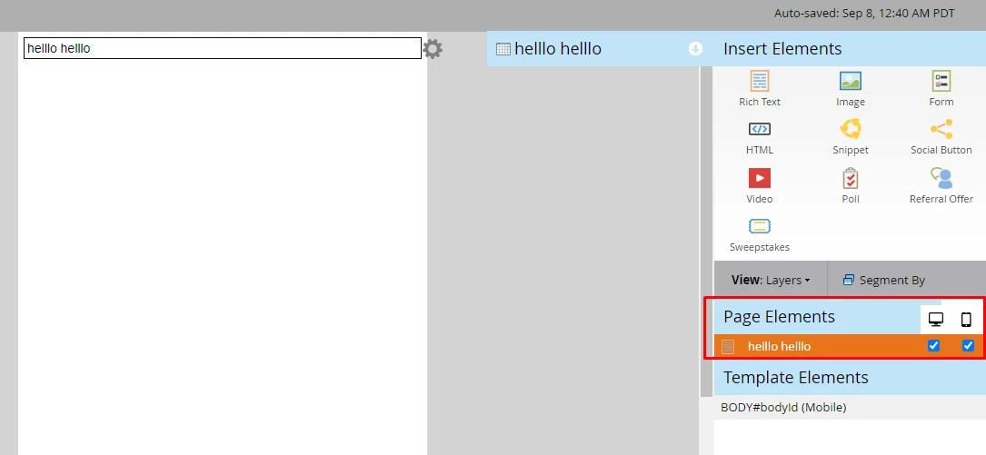 I tried to use free-form landing page template which is validated for mobile compatibility. Then I create a landing page using that template. Activated mobile version which displays blank.